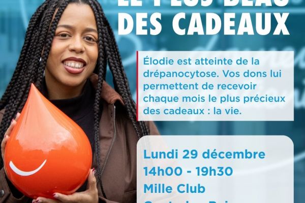 La prochaine journée de don de sang se dérouelra le lundi 29 décembre de 14h00 à 19h30 au Mille Club, à Contz-les-Bains.