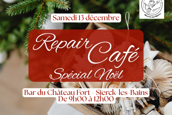 Le prochain Repair Café aura lieu le samedi 13 décembre de 9h00 à midi au bar du Château Fort à Sierck-les-Bains.