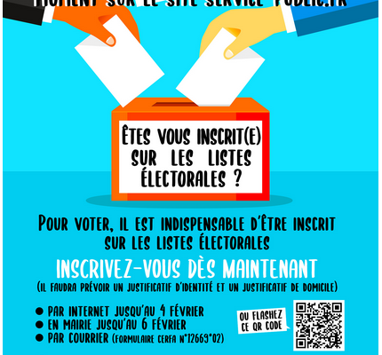 Les élections municipales approchent (15 et 22 mars 2026). Pensez à vous inscrire sur la liste électorale au plus vite.